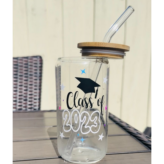 16oz Mason Jar with Bamboo Lid & Glass Straw - Graduation